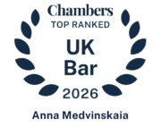"Anna Medvinskaia is a well-respected junior whose consumer finance practice involves representing financial institutions in mis-selling and consumer credit cases."