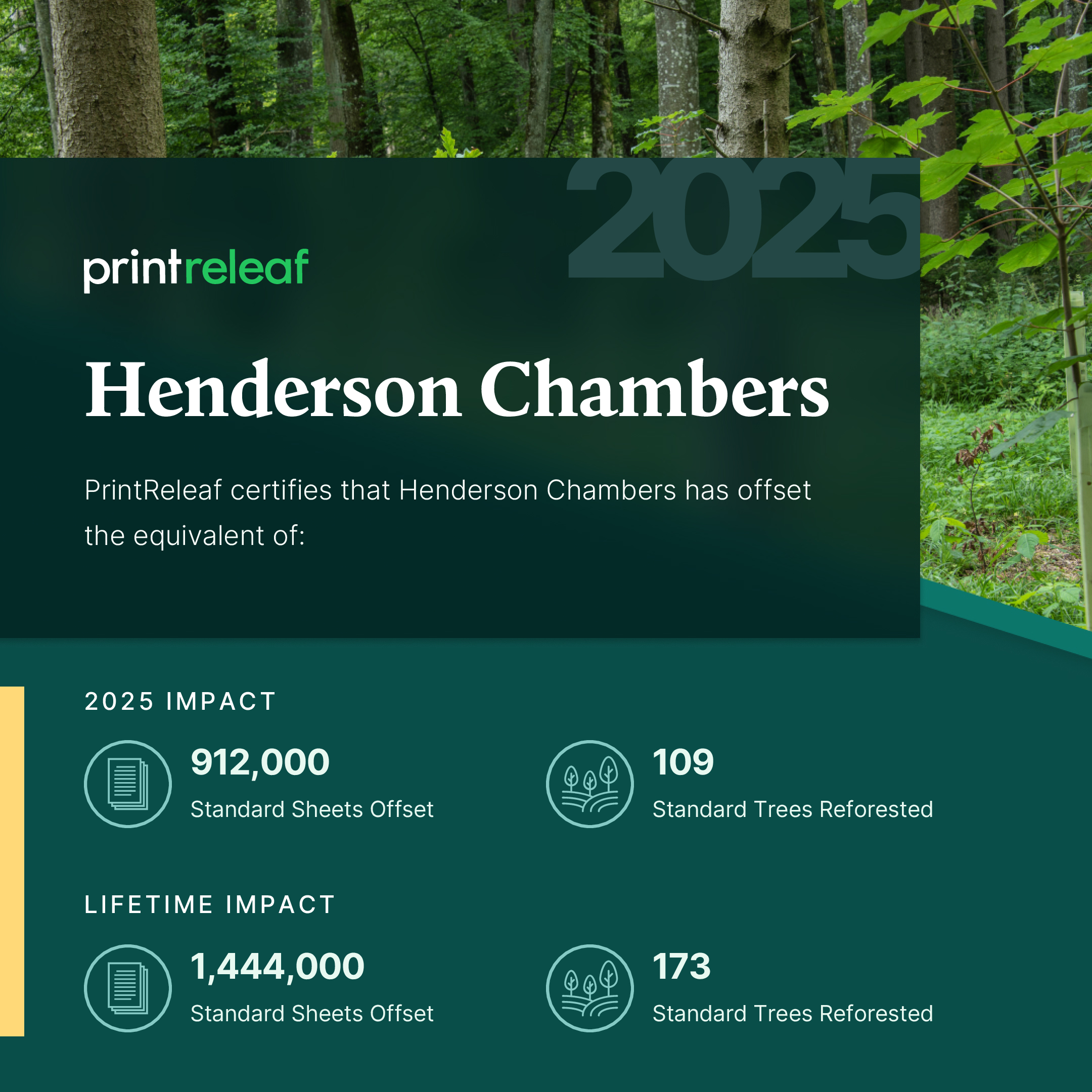 Chambers joined the PrintReleaf programme in June 2024 – an initiative which helps to reduce the environmental impact of our business by monitoring our paper consumption and printer usage to calculate our paper footprint. Based on this calculation, PrintReleaf then replants a specific number of trees in certified global reforestation projects and offsets the carbon associated with the production of fiber-based materials.